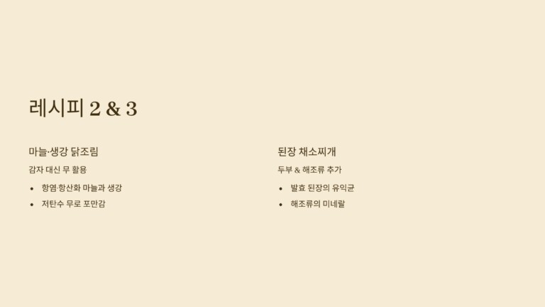 2. 마늘·생강 듬뿍 닭조림 – 감자 대신 무 활용
